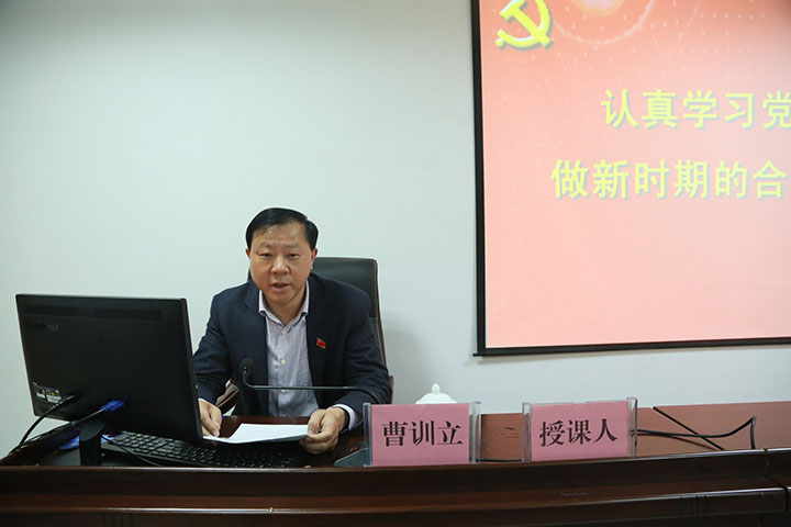 第二部分由安糧集團黨委委員曹訓立講授《認真學習黨章,做新時期的合格黨員》的講座,他依據“兩學一做”具體要求,針對黨員“四講四有”標準,結合公司實際,引經據典、旁征博引,與大家分享做一名合格黨員就是要做到“忠誠、干凈、擔當”的六字箴言。