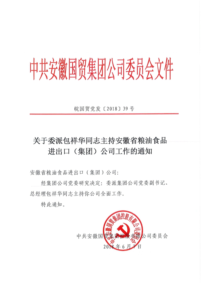 包祥華同志主持安糧集團(tuán)全面工作