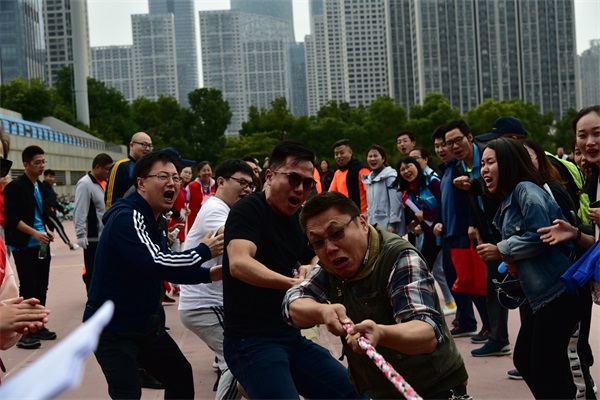 上午9點半,在簡短的開幕式后,別開生面的競賽項目陸續(xù)登場,八支隊伍各顯風(fēng)采。五人六足項目首先登場,步伐一致是該項目的制勝法寶,東倒西歪的令人捧腹,中途摔倒的令人嘆息,安糧地產(chǎn)代表隊最終勇拔頭籌;摸石過河考驗手足協(xié)調(diào),安糧期貨熊青寶快速突圍,棋高一著;跳大繩的關(guān)鍵是快和穩(wěn),安糧國際一鼓作氣,幾乎零失誤,遙遙領(lǐng)先;踢毽子比賽靈巧之中顯真功夫,集團(tuán)本部方嘉亮身手不凡,技壓群英;自行車競慢,平靜中見驚奇,合肥建工黃玉獨樹一幟;托球接力跑,一考凌波微步,二比掌上功夫,安糧實業(yè)笑到最后;呼啦圈競走難在“左右互博”,安糧小貸張媛媛最具神通;拔河項目是力量的較量,建工一隊勢如牛,盡展雄風(fēng);滾鐵環(huán)項目,作為童年的回憶,也漸漸成為回憶中的項目,安糧控股潘冬生副總裁帶大家領(lǐng)略了老前輩的少年風(fēng)采;50米折返跑接力作為本屆比賽的壓軸大戲,最為矚目,集團(tuán)聯(lián)隊一騎絕塵!十項比賽結(jié)束,“有趣”的一天也臨近尾聲,8支隊伍各領(lǐng)風(fēng)騷,獎牌背后,團(tuán)結(jié)奮進(jìn)是制勝的終極秘訣。