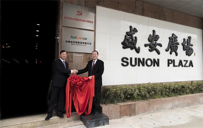 隨后,范總和曹總一同為安徽省安糧集團有限公司揭牌,全體參會人員共同見證了這一歷史性時刻。