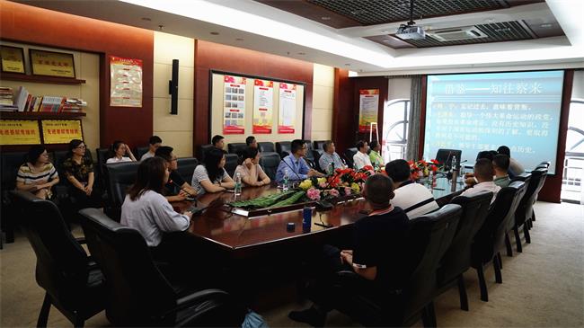 參觀結(jié)束后,實(shí)業(yè)黨支部特邀南昌市委黨?;A(chǔ)理論教研部副主任趙坤教授為參加活動的全體黨員在紀(jì)念館黨員活動室就地上了一堂主題為“重溫紅色經(jīng)典,深入學(xué)習(xí)四個意識、四個自信、兩個維護(hù)核心精神”的現(xiàn)場黨課,既詳實(shí)又生動地介紹了江西這片紅色土地上的革命歷史,從黨史的視角梳理了“四個意識”、“四個自信”、“兩個維護(hù)”的重要性和迫切性,進(jìn)一步領(lǐng)會了習(xí)總書記關(guān)于推進(jìn)紅色基因傳承的要求。