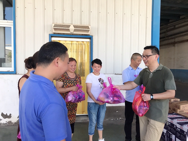 范陽董事長一行先后考察了蟹粉、糖水板栗生產(chǎn)車間、機房和冷庫等重要場所,不時提出意見和建議。在生產(chǎn)現(xiàn)場,范陽董事長率何傳友副總經(jīng)理、安糧集團工會主席周洪等向一線人員發(fā)放了礦泉水、仁丹、毛巾等防暑降溫用品,叮囑員工注意健康,做好防暑,同時要求安糧各級領(lǐng)導(dǎo)和職能部門,一定要千方百計地做好防暑降溫和后勤保障工作,確保一線員工的工作安全和身體健康。