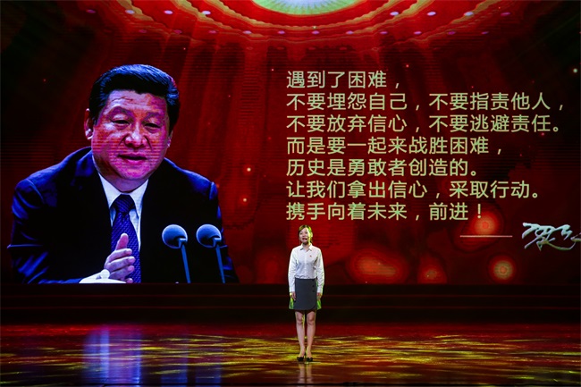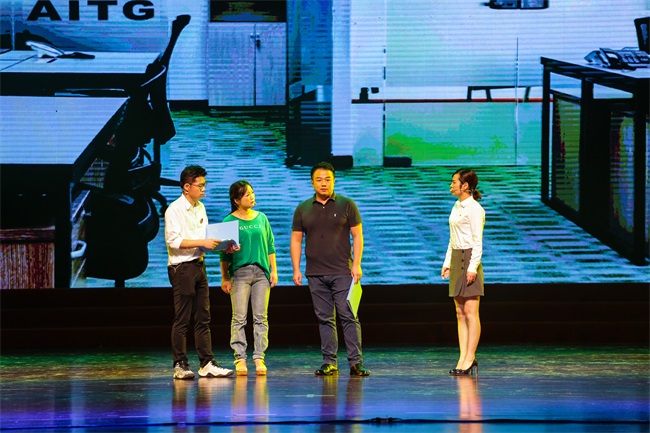 情景劇《使命的接力》分為四個篇章,前三個篇章以五四運動、抗日戰(zhàn)爭、新中國成立以及改革開放等重要時間節(jié)點為背景,節(jié)選具有鮮明時代烙印的畫面,講述了一百年來中國人民的民族氣節(jié)和不屈不饒的奮斗歷程;最后一個篇章則回歸到當(dāng)下外貿(mào)工作中的一個真實場景,描述了新時代國貿(mào)人接過前輩的接力棒,不忘初心、牢記使命,在一次次的磨礪中不斷成長,立志為中華民族偉大復(fù)興貢獻(xiàn)力量的動人故事。