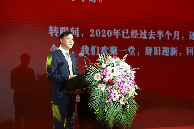 安糧集團黨委書記、董事長曹訓(xùn)立首先為年會致辭。他指出,2019年,公司經(jīng)營規(guī)模創(chuàng)歷史新高、經(jīng)濟效益大幅提升、整體實力再上新臺階:營業(yè)收入321億元,進出口額17.58億美元,利潤翻一番,總資產(chǎn)達256億元,凈資產(chǎn)同比增加12.4%。在新的一年,曹訓(xùn)立董事長指出,要以海螺集團與國貿(mào)集團深度融合為契機,在“穩(wěn)效增收”上做出新貢獻,在“減層去僵”上落實新舉措,在“降桿防險”上取得新突破,全面完成國貿(mào)集團下達的各項任務(wù)指標(biāo),夯實安糧高質(zhì)量發(fā)展的基礎(chǔ),以更加優(yōu)異的成績向“十三五”規(guī)劃收官獻禮,為“十四五”規(guī)劃開好篇。