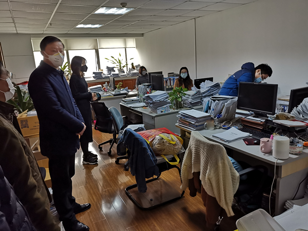 根據(jù)公司統(tǒng)一安排,涉及業(yè)務(wù)開展和資金運行的職能部門從3日起安排專人現(xiàn)場值班辦公。在盛安廣場一樓大廳接受進場檢測時,曹訓立董事長詢問了近日大樓進出人員情況和檢查情況,要求物業(yè)公司務(wù)必把好大樓的進門關(guān)。在大樓走訪時,曹董事長來到安糧國際、安糧實業(yè)和安糧控股的財務(wù)部、國際結(jié)算部等部門,了解工作進展情況和人員值班情況,要求相關(guān)部門妥善做好值班人員輪崗和現(xiàn)場防護工作,重點保障業(yè)務(wù)開展,尤其保障放假期間的資金調(diào)配。他指出,當前疫情防控工作任務(wù)艱巨,首先要確保在崗人員的人身健康萬無一失,盡量采用遠程辦公、預約辦事等方式處理必要的工作任務(wù),減少員工在崗次數(shù)和時間。