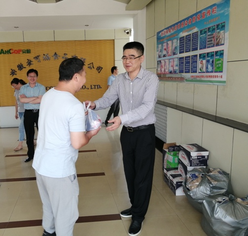 8月12日上午,安糧集團(tuán)副總裁、安糧實(shí)業(yè)董事長(zhǎng)吳國(guó)杰,赴安可福食品有限公司開展調(diào)研工作并代表安糧集團(tuán)工會(huì)向一線人員工發(fā)放了礦泉水、仁丹、毛巾等防暑降溫用品,慰問(wèn)奮戰(zhàn)在高溫生產(chǎn)一線的員工,叮囑大家在疫情期間尤其要注意做好防暑降溫,把身體健康放在第一位。