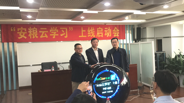 夢想從學(xué)習(xí)開始,事業(yè)從實踐起步。11月18日,安糧集團職工網(wǎng)絡(luò)學(xué)習(xí)培訓(xùn)平臺-------“安糧云學(xué)習(xí)”------上線啟動會在盛安廣場18樓舉行,安糧集團黨委書記、董事長曹訓(xùn)立,安糧集團黨委副書記、紀委書記孫毅與平臺供應(yīng)商江蘇云學(xué)堂副總經(jīng)理張杰共同啟動平臺,安糧系統(tǒng)各單位近60名員工作為學(xué)習(xí)代表見證了“安糧云學(xué)習(xí)”平臺正式上線。