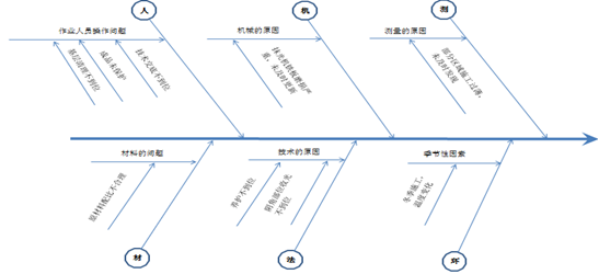 圍繞著“空鼓”和“開裂”兩項主要缺陷,小組成員對整個施工流程進(jìn)行旁站,深入各個流程進(jìn)行檢查,召開分析會,運用因素分析法從“5M1E”6個方面進(jìn)行分析、歸納出10項末端因素。