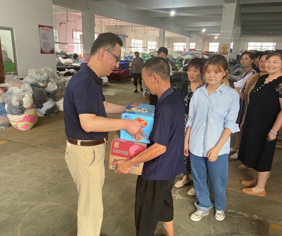 7月26日,安糧集團黨委委員、副總裁、工會主席周洪一行前往安糧實業(yè)下屬紹興安糧紡織品有限公司看望慰問一線職工,并為職工們送上高溫慰問品。周洪感謝大家在高溫酷暑中堅守一線,為公司高質(zhì)量發(fā)展付出辛勤和汗水,叮囑大家注意防暑降溫,合理安排作息,并囑咐現(xiàn)場負(fù)責(zé)人做好職工勞動保護和防暑降溫工作,切實保障職工的安全和健康。