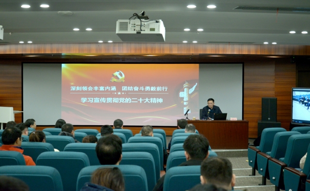 何汝才書記為安糧國際50余名黨員作了“深刻領(lǐng)會(huì)豐富內(nèi)涵 團(tuán)結(jié)奮斗勇毅前行——學(xué)習(xí)宣傳貫徹黨的二十大精神”主題宣講。 他從深刻領(lǐng)會(huì)黨的二十大會(huì)議的重要意義、精神實(shí)質(zhì)、弘揚(yáng)偉大建黨精神、深刻領(lǐng)會(huì)以中國式現(xiàn)代化推進(jìn)中華民族偉大復(fù)興的歷史重任等四個(gè)方面系統(tǒng)、深入地解讀了黨的二十大精神重大意義、主題內(nèi)涵及核心內(nèi)容,并結(jié)合海螺集團(tuán)、安徽國貿(mào)的發(fā)展對所有黨員干部作出要求。他強(qiáng)調(diào),學(xué)習(xí)宣傳貫徹黨的二十大精神是公司當(dāng)前和今后一個(gè)時(shí)期的重大政治任務(wù),要深刻領(lǐng)會(huì)黨的二十大報(bào)告對堅(jiān)定不移全面從嚴(yán)治黨、深入推進(jìn)新時(shí)代黨的建設(shè)偉大工程作出的重要部署;要堅(jiān)持學(xué)思用貫通,聚焦主責(zé)主業(yè),堅(jiān)持高質(zhì)量發(fā)展,切實(shí)把黨的二十大精神落實(shí)到各項(xiàng)具體工作和實(shí)際行動(dòng)中,展現(xiàn)更大擔(dān)當(dāng)作為,為海螺集團(tuán)“爭創(chuàng)世界一流企業(yè)”貢獻(xiàn)更大力量。