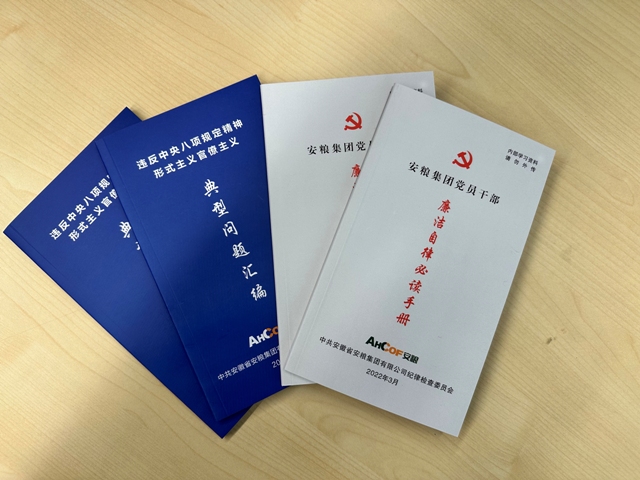 會(huì)議還給每位新任職干部發(fā)放了《安糧集團(tuán)黨員干部廉潔從業(yè)必讀手冊(cè)》和《違反中央八項(xiàng)規(guī)定精神形式主義官僚主義典型問題匯編》。