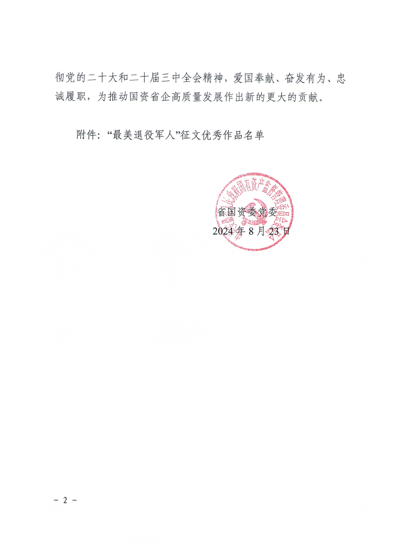 近日,安徽省國(guó)資委黨委通報(bào)了“最美退役軍人”征文活動(dòng)優(yōu)秀作品名單。安糧集團(tuán)選送的兩篇作品《退役不改本色 續(xù)寫奮斗篇章》《揮別軍涯 續(xù)寫華章》均獲評(píng)“優(yōu)秀作品”。