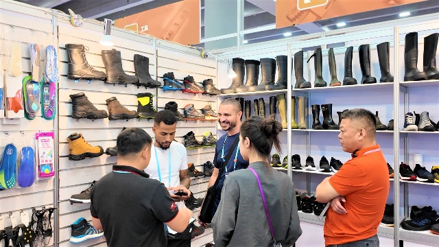 小家電區(qū)域里,安糧的電風(fēng)扇憑借智能控溫、多檔風(fēng)速調(diào)節(jié)等功能有效兼顧了節(jié)能與舒適體驗,多樣化的外觀也能輕松適配各種家居風(fēng)格。鞋類品展區(qū)的勞保工具鞋憑借耐磨防滑、支撐性好的優(yōu)點(diǎn)吸引了建筑、物流等行業(yè)客戶的咨詢。
