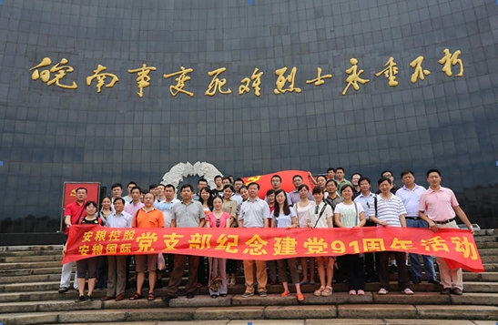 2012年7月1日,正值中國(guó)共產(chǎn)黨建黨91周年,安糧控股、安糧國(guó)際黨支部在涇縣皖南事變烈士陵園組織新老黨員舉行了“緬懷革命先烈、重溫入黨誓詞暨新黨員入黨宣誓活動(dòng)”。